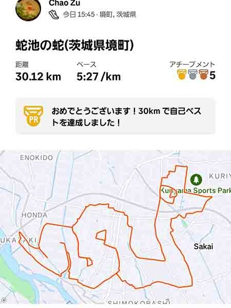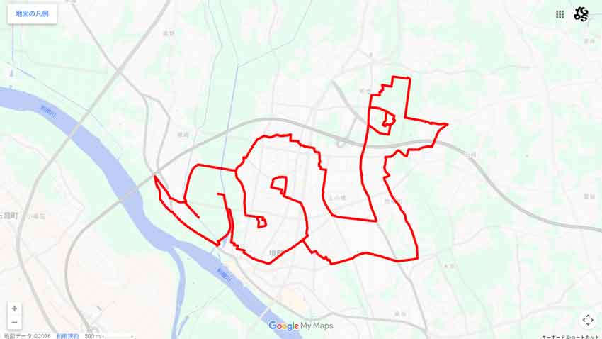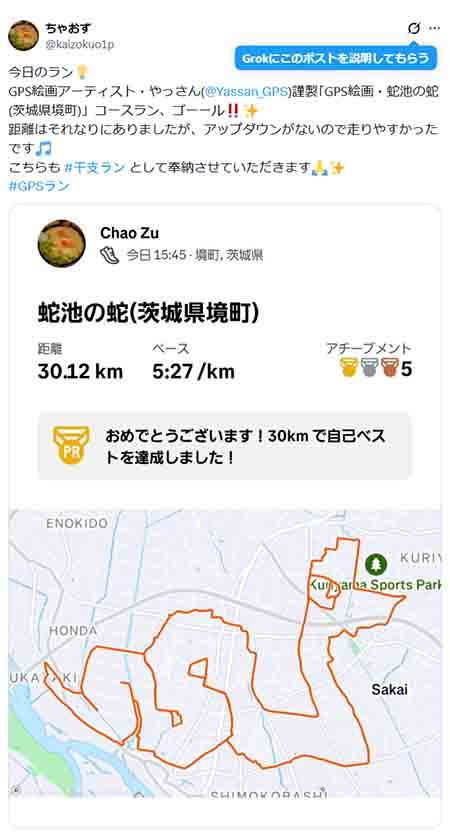A snake shaped GPS art around Jaike Pond, a Ibaraki’s spot associated with snakes, the animal of the Chinese zodiac.