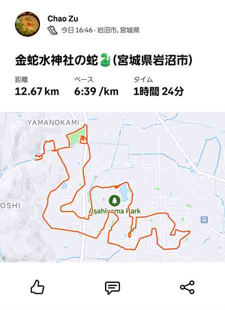 宮城県で蛇とゆかりのあるスポット・金蛇水神社周辺に、干支の動物「蛇」を描いたGPSアート.